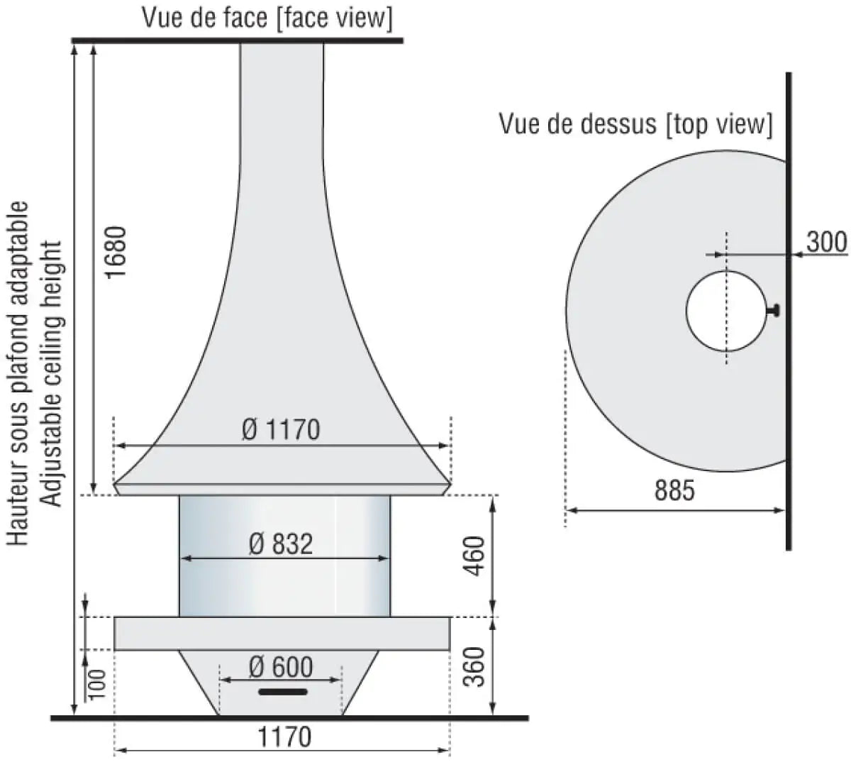 - Toate șemineele sunt prezentate cu înălțime standard sub tavan de 250 cm. Înălțimea este ajustabilă in funcție de nevoile și cerințele dumneavoastră, de coșurile de fum și de unghiurile acoperișului.