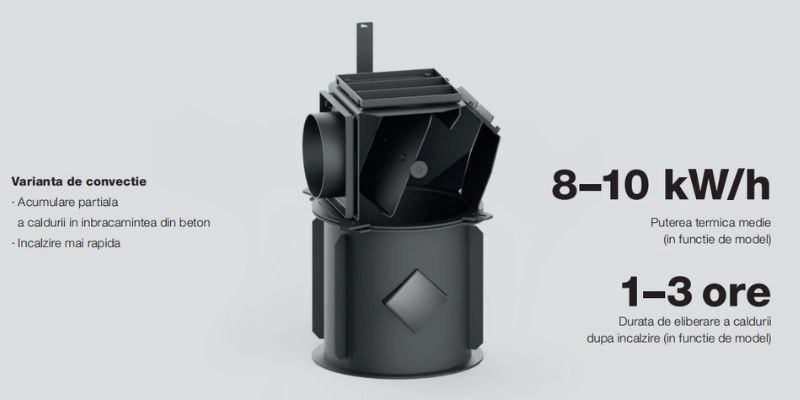 • Comparație cu sistemele cu inertie termica ridicata: Spre deosebire de acestea, semineul cu convectie asigura o incalzire rapida si eficienta.