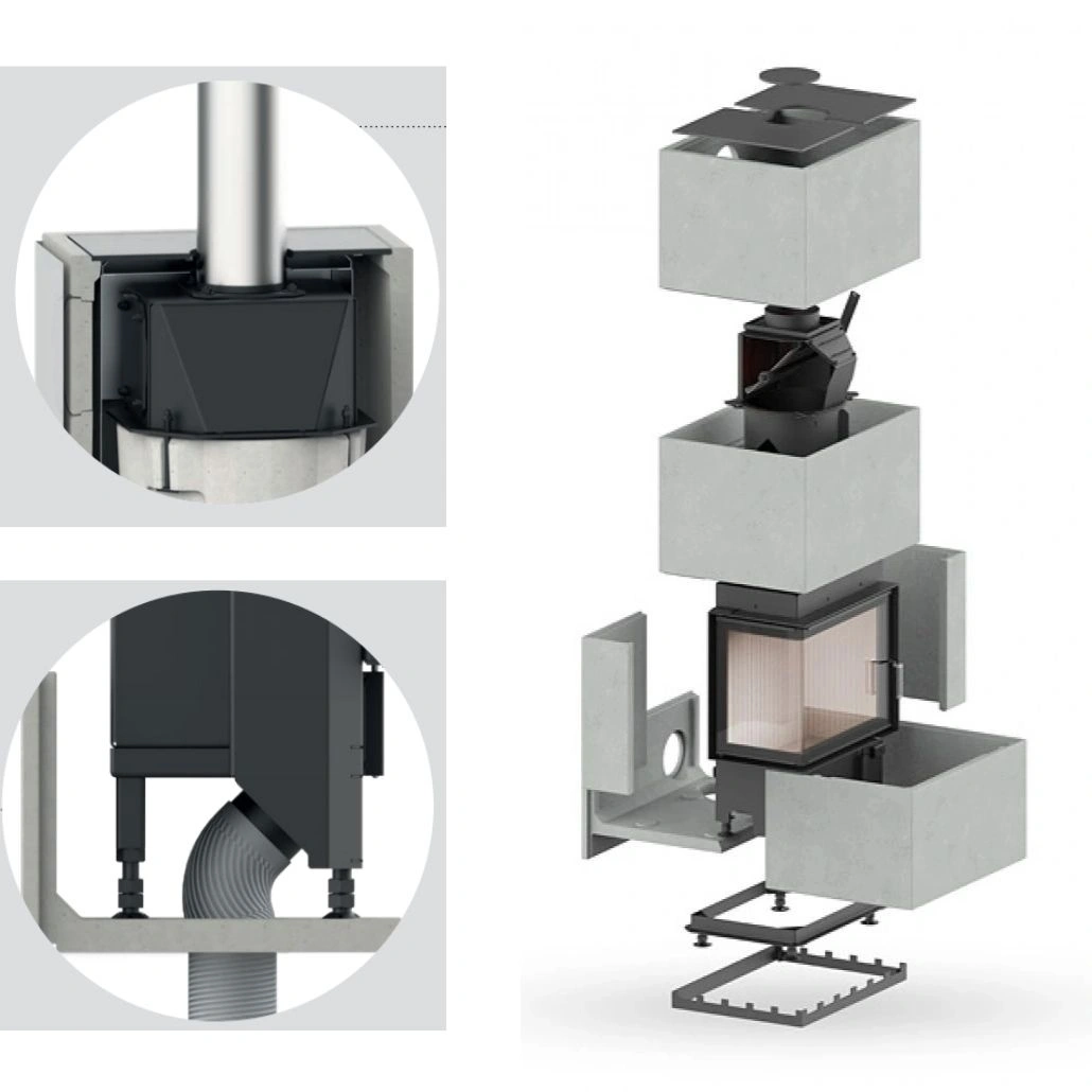 In timpul procesului de design, am dat prioritate elementelor cele mai importante: instalare rapida, variabilitatea conexiunii si o durata de viata indelungata garantata pentru intregul semineu. Acest aspect este subliniat de combinatia materialelor utilizate si de sistemul modular al produsului. Totul se potriveste perfect si instalarea dureaza doar cateva ore. Tot ce ai nevoie este inclus in pachet, inclusiv compus de reparatie pentru orice imperfectiuni.