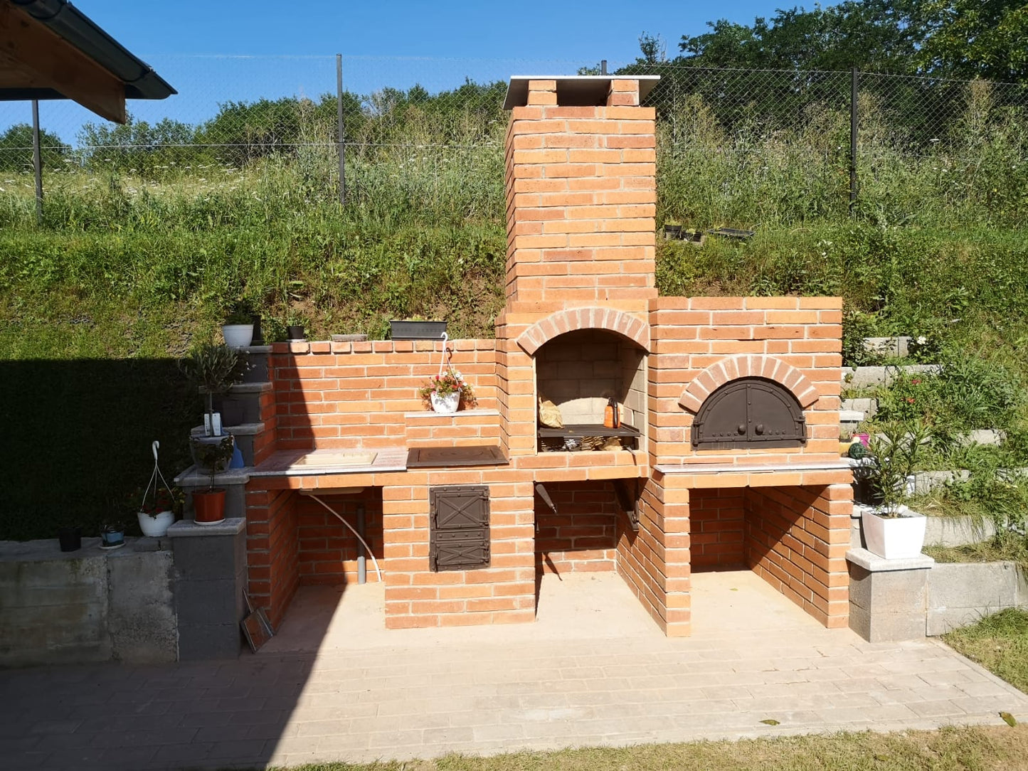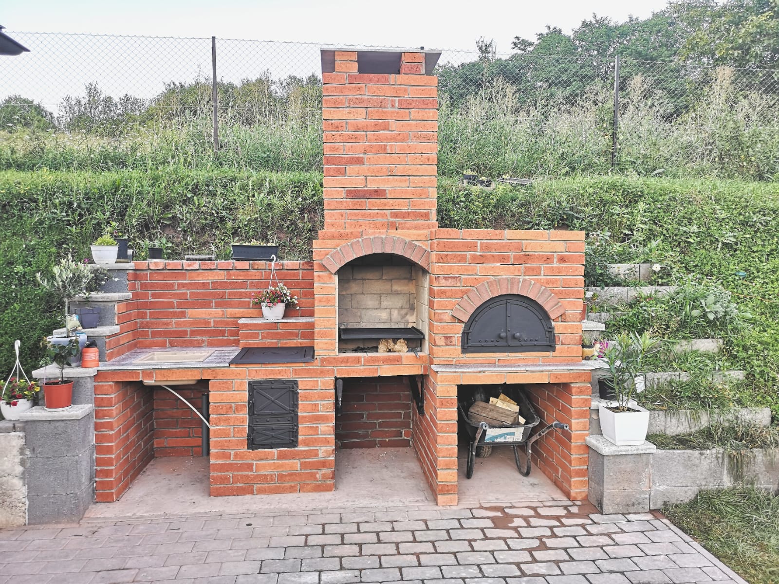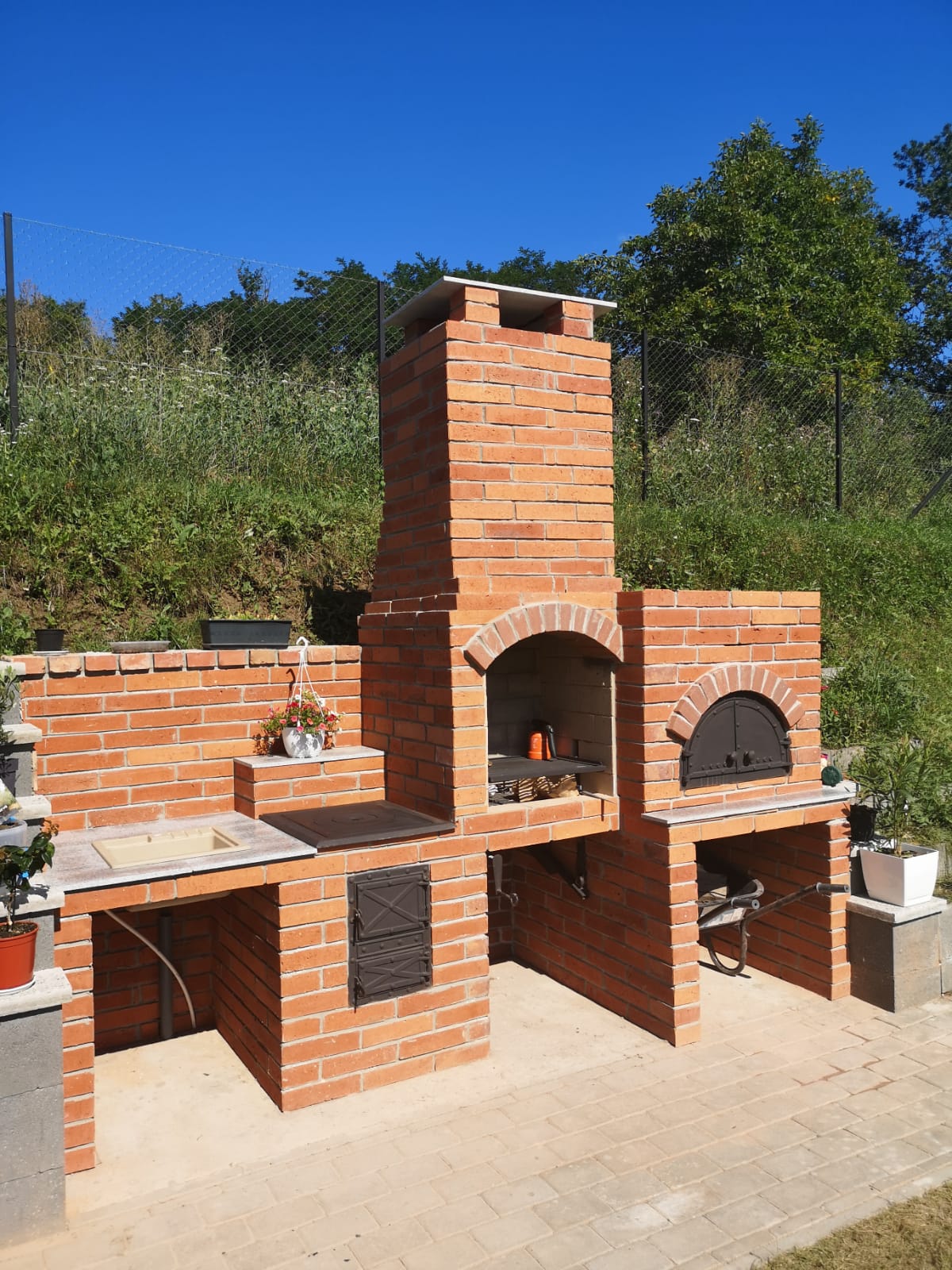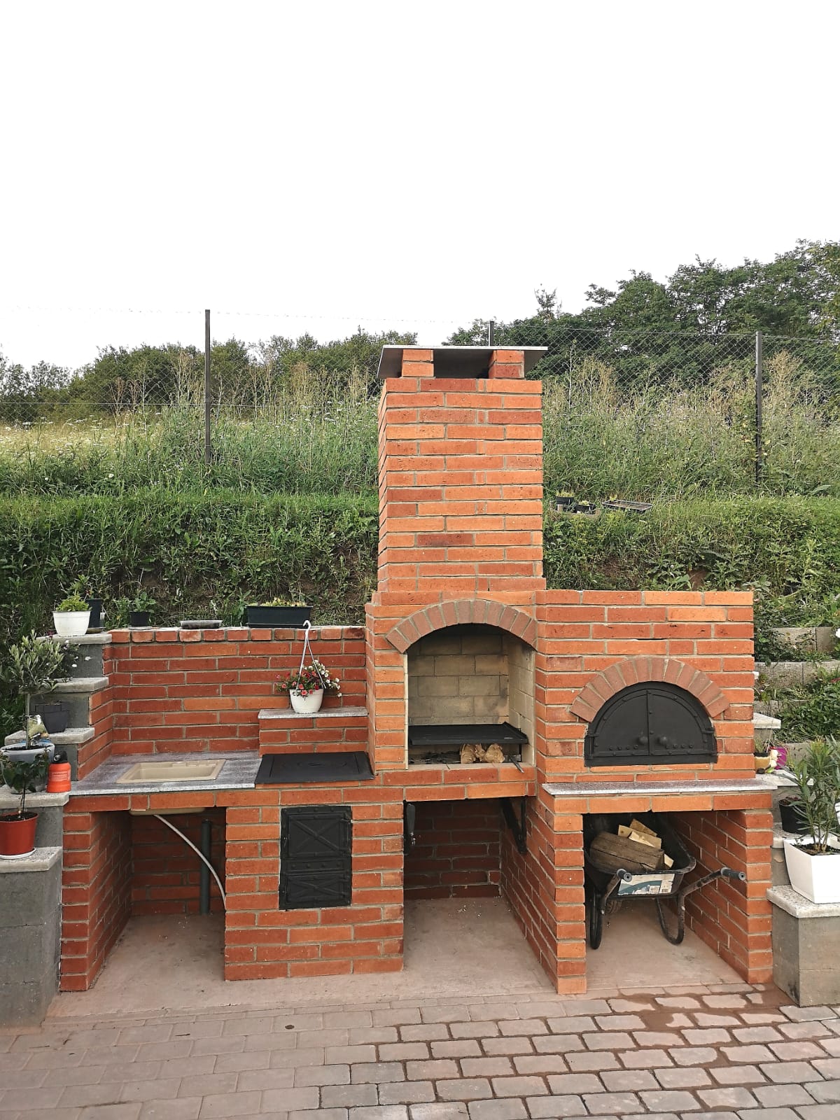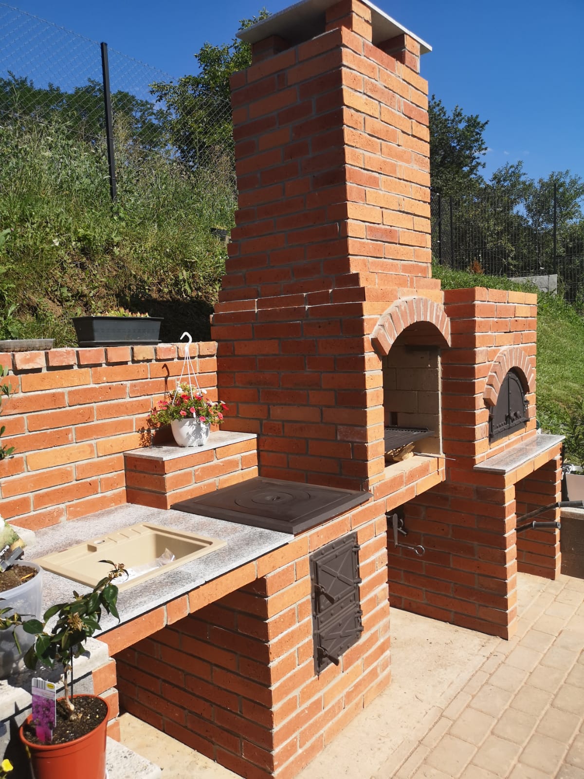 Gratar de gradina , cuprinde gratar cu sistem de ridicare, soba cu plita, chiuveta , blat de lucru, cuptor.