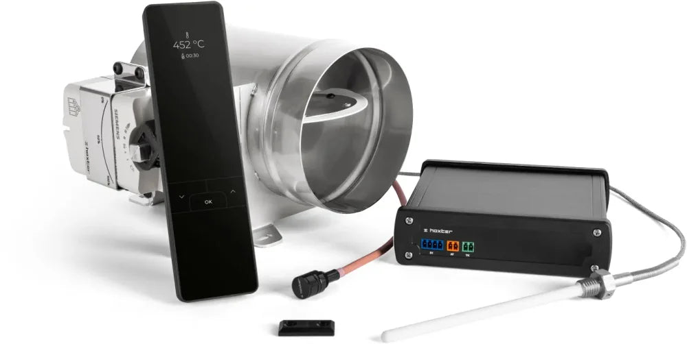 Confortul sticlei curate - curățenia geamului de vizionare este una dintre cele mai înalte priorități în dezvoltarea produselor Hoxter. Sistemul de conducte de aer de ardere este proiectat astfel încât aerul furnizat cuptorului să curgă în jurul vizorului. Fluxul de aer creează astfel o perdea de aer dinamică care transportă particulele de funingine și praf înapoi în cuptor.
