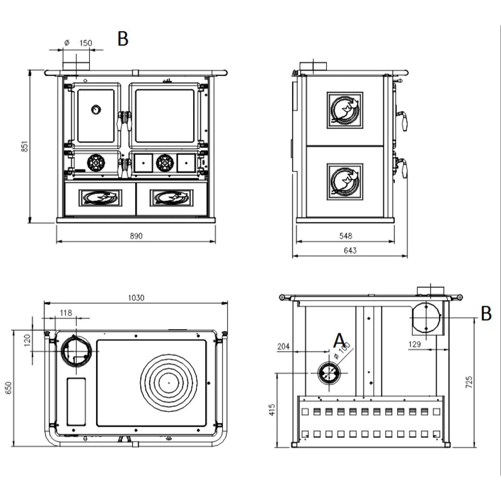 Acest aparat impresionează prin calitatea superioară a execuției: camera de foc este fabricată din fontă robustă, ușile și cadrul sunt emailate, iar plita cu inele de gătit din fontă lustruită permite gătitul versatil direct pe foc. Cuptorul de 28 de litri din oțel emailat cu porțelan extinde posibilitățile culinare și invită la friptura și coacerea tradiționale.
