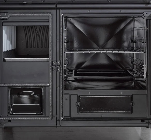 Gătiți cele mai delicioase preparate pe plita lustruită cu inele din fontă sau coaceți cele mai fine prăjituri și caserole în cuptorul din oțel emailat cu porțelan de 78 de litri.