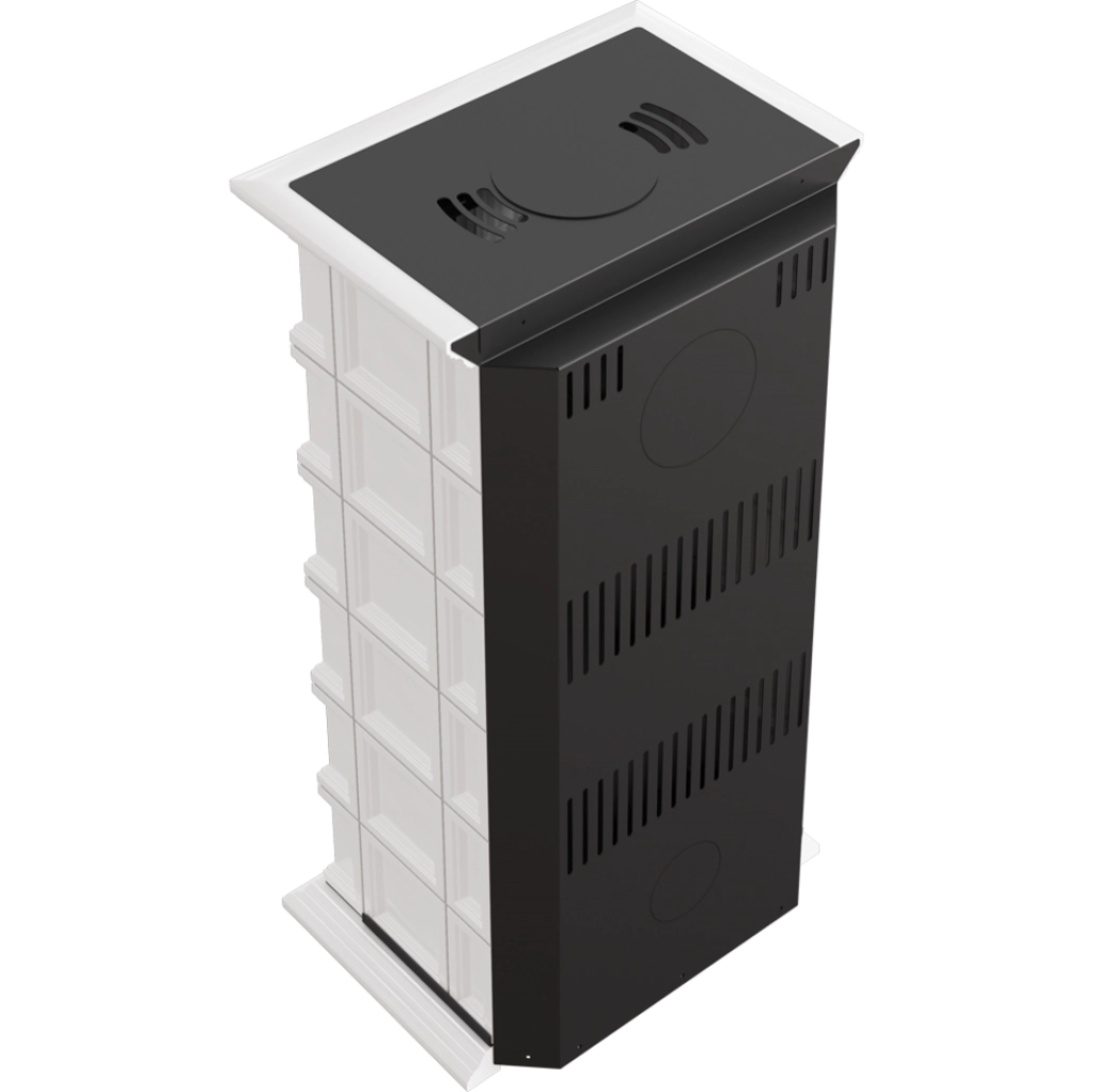 Soba din cahle de teracota cu focar de semineu integrat. Focarul este captusit la interior cu termota pentru o sticla cat mai curata. In timpul arderii are posibilitatea de admisie a aerului proaspat din exterior si poate fi racordata la cosul de fum, atat pe partea din fata cat si pe partea din spate.