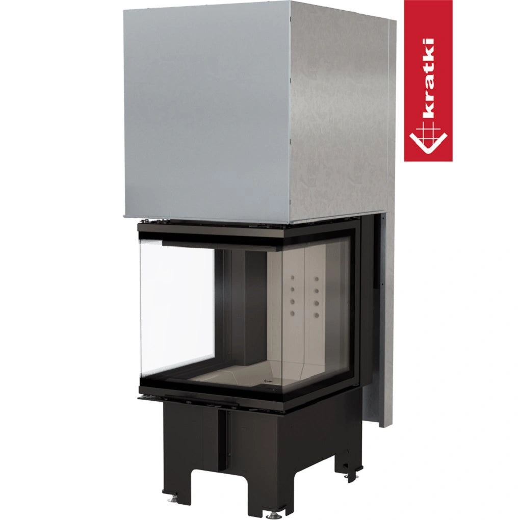 Focarul cu sticla pe trei laturi, cu deschidere verticala, prin glisarea usii, ce ofera un plus de confort acestuia si un design modern. Usa este prevazuta si cu deschidere standard, orizontala, pentru o curatare usoara a sticlei. Focarul este echipat la nivelul conului cu sistem de recuperare a caldurii, compus din tevi orizontale ce preiau din caldura gazelor de evacuare, crescand eficienta acestuia. Datorita samotei din interior si a sistemului de ardere pe vatra, procesul de ardere al lemnului este mai amplu, rezultand astfel reziduri de cenusa reduse. Focarul este dotat cu un con de evacuare reglabil la 360 grade, pentru o racordare facila la cosul de fum.