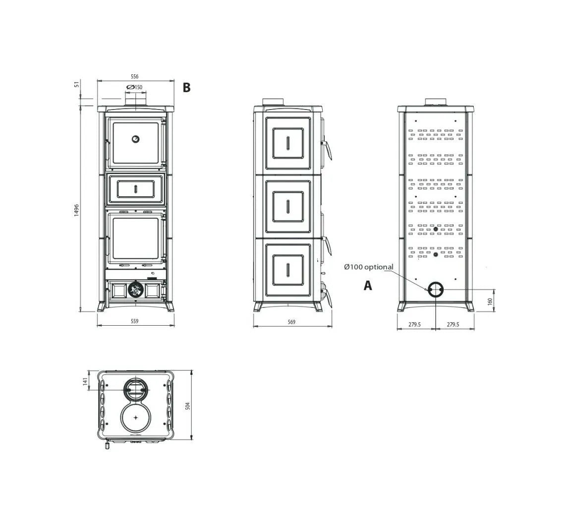 Diametrul țevii de evacuare a gazelor arse (Ø): 150 mm S