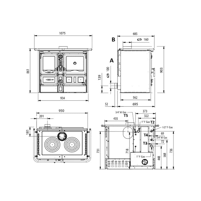 Sobă pe lemne de 16,8 kW - 481 m³ încălzibilă - antracit negru - Termorosa XXL DSA 4.0 7017585 - Nordica