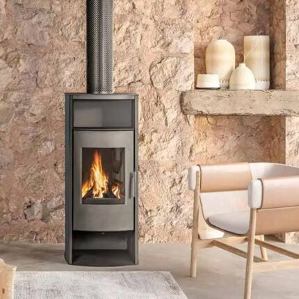 Aceasta soba pe lemne are forma dreptunghiulara cu fata usor rotunjita. Puterea sa de 8 kW îți va încălzi casa în timpul iernii. In plus, dispune si de spatiu pentru depozitarea lemnelor de foc.