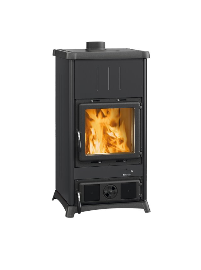Soba lemn FEDORA STEEL. Soba pe lemne FEDORA STEEL are îmbrăcăminte din oțel emailat și inel superior din fontă pentru încălzirea recipientelor; eficiență ridicată și emisii reduse.