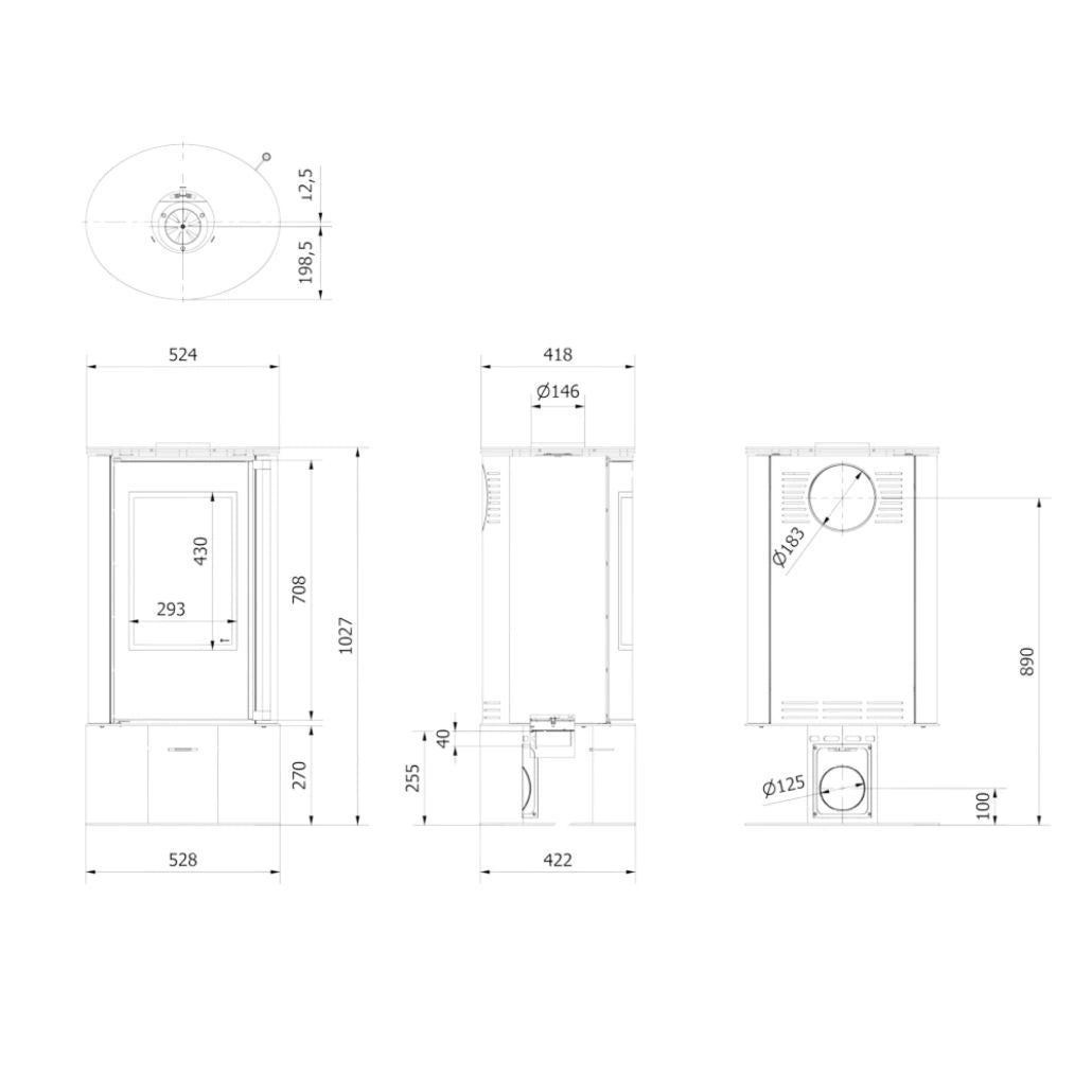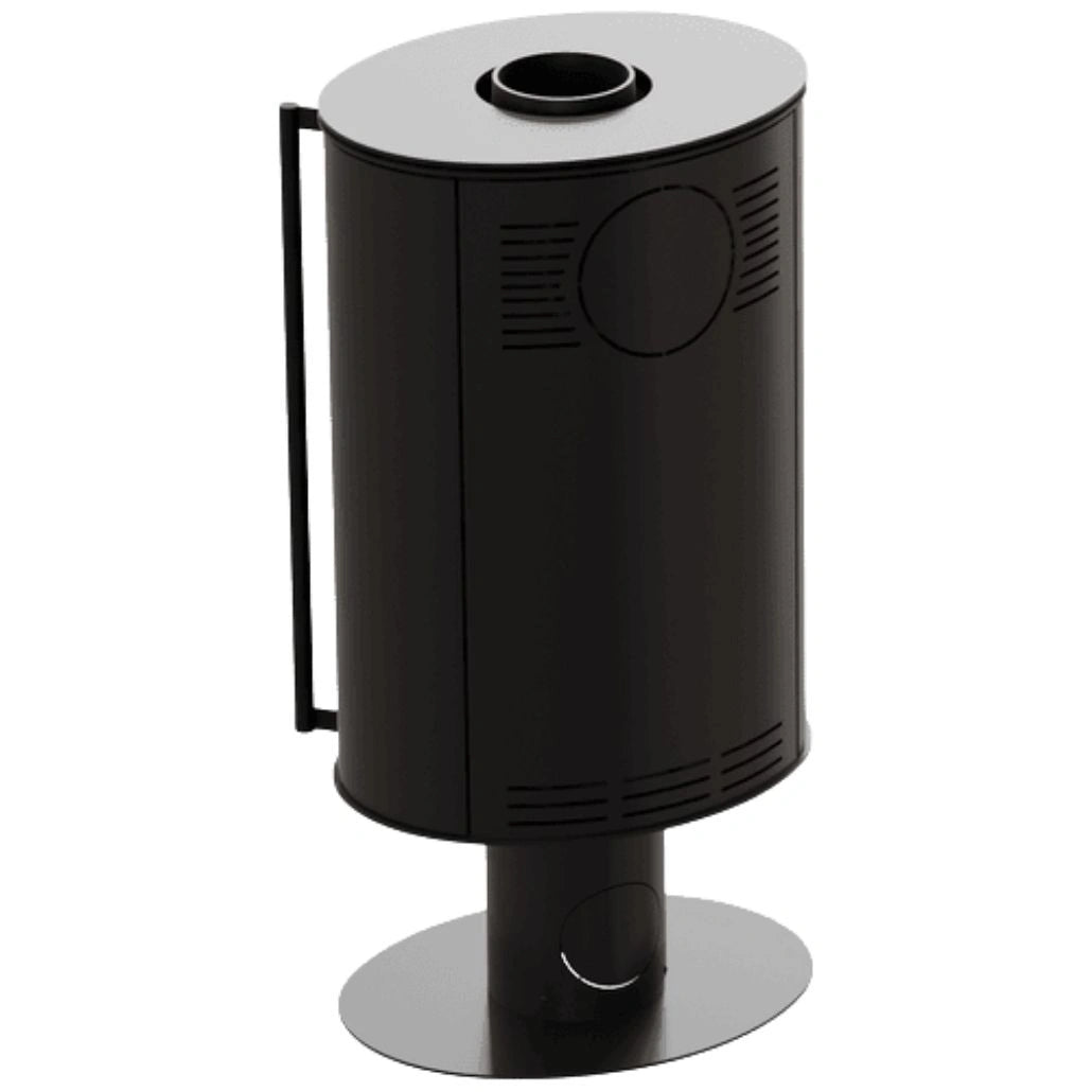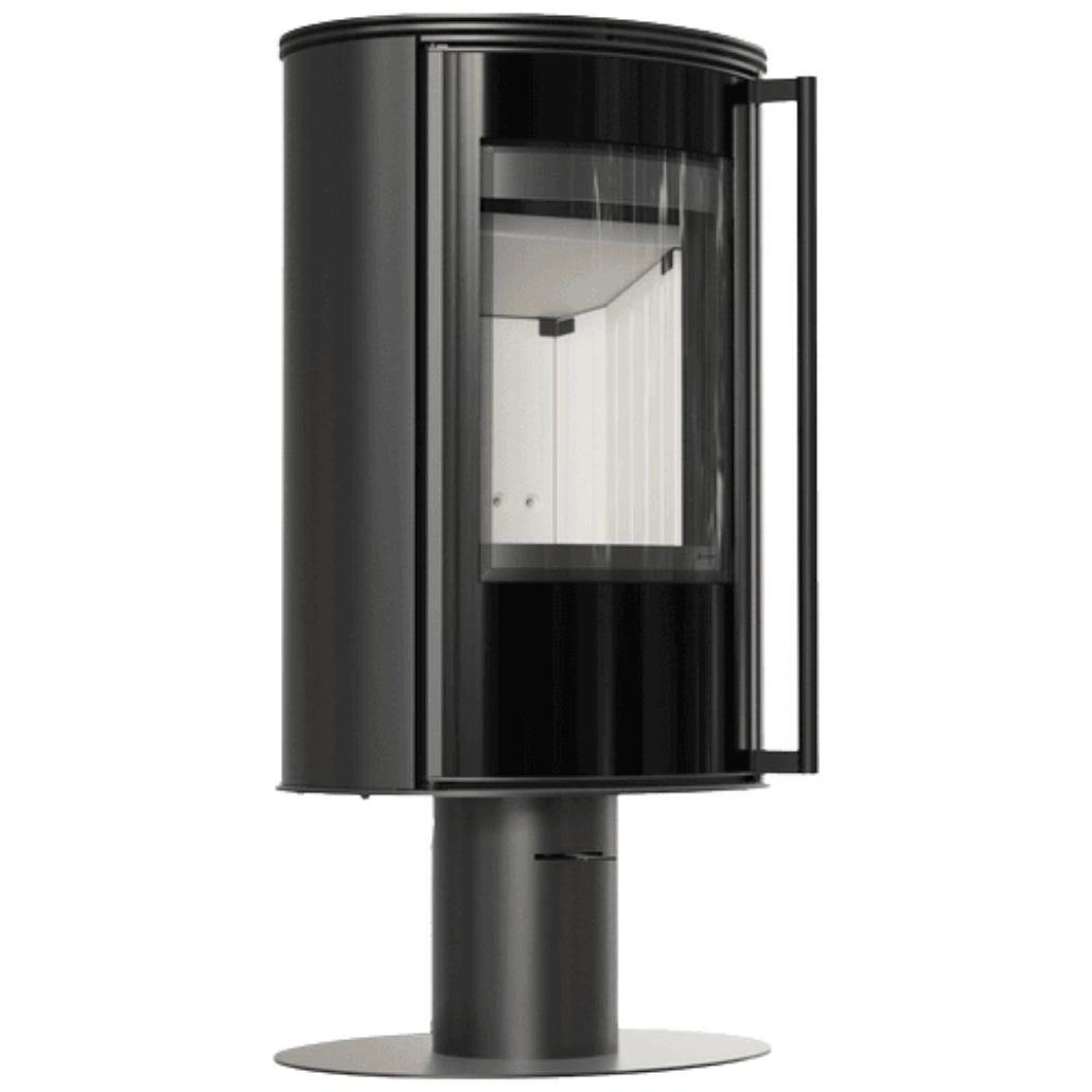 Soba moderna din otel, cu design pe piedestal, prevazuta cu interior din samota pentru acumulare de caldura si rezistenta sporita. Sistemul de tripla combustie asigura o ardere completa si un randament termic optim.