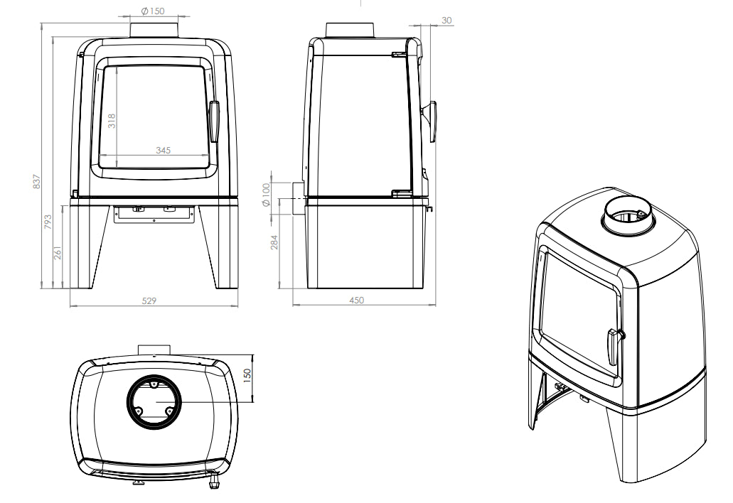 - Racord coș de fum: 150 mm – Integrare simplă în sistemul de evacuare existent.