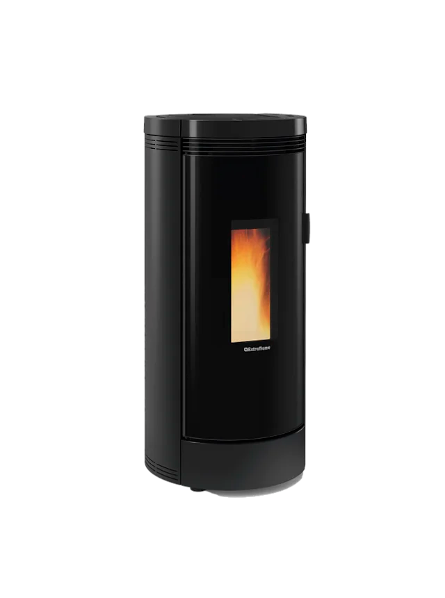 Forma rotundă elegantă a sobei Debby face din această sobă pe peleți un element unic al decorului casei tale. În plus, sticla ceramică ROBAX® NightView, disponibilă opțional, pentru ușa de siguranță, sporește frumusețea flăcării și face camera de ardere invizibilă atunci când soba este oprită, pentru o integrare perfectă în cameră.