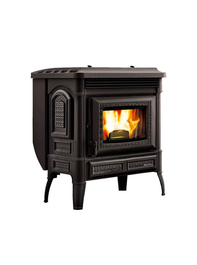 Construcție din fontă emailată, un material care nu numai că oferă eleganță și estetică atemporală, dar asigură și o excelentă capacitate de stocare și difuzie a căldurii. Ventilație frontală cu motor dedicat și funcție de confort pentru o liniște maximă fără pierderi de eficiență.