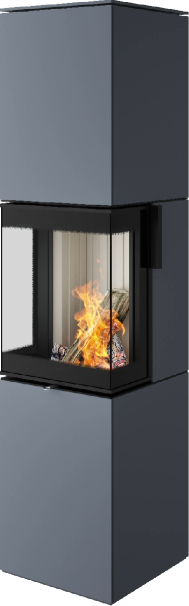 Soba din oțel Trico L se remarcă printr-un design clar, o formă cubică modernă și o eficiență energetică ridicată (eficiență de peste 80% - clasa de eficiență energetică A+). Cu dimensiuni de bază de 40 x 40 cm, soba modernă din oțel Trico L este identică ca și construcție cu modelul nostru din oțel Trico S; cu 1653 mm, este doar puțin mai înaltă. Opțional, se poate instala un element de depozitare în secțiunea superioară a modelului din oțel Trico L. Datorită vitrajului generos, pe trei laturi, puteți vedea perfect focul din toate pozițiile camerei. La cerere, șemineul din oțel Trico L poate fi livrat cu argilă refractară neagră. Pe fundalul întunecat și profund, jocul său luminos al flăcărilor este accentuat impresionant. Învelișul din oțel Trico L este, de asemenea, format din plăci de oțel cu grosimea de 6 mm, ca și în versiunea S mai mică. Materialul nobil și prelucrarea elaborată conferă sobei moderne un aspect minimalist, de înaltă calitate.