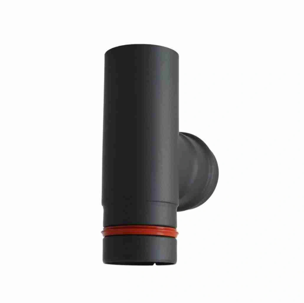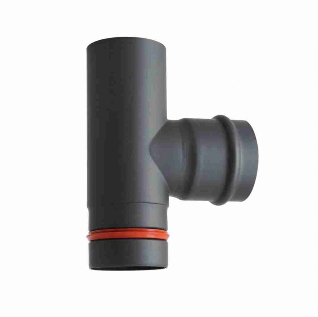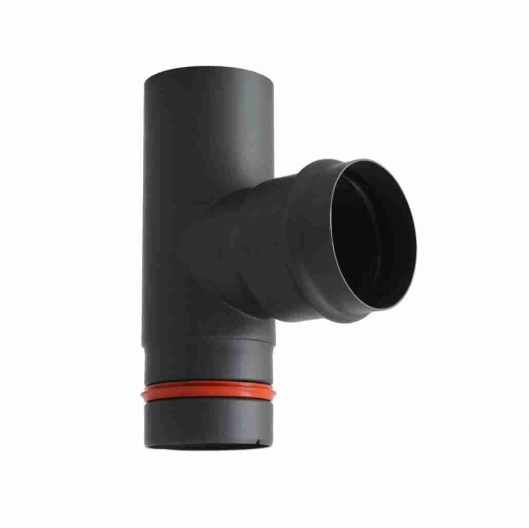 T de 90 de grade premium cu garnitura de etansare si posibilitate de adaugare a unei baze de condens detasabila oferind acces si pentru curatarea tronsonului de legatura la cosul de fum.